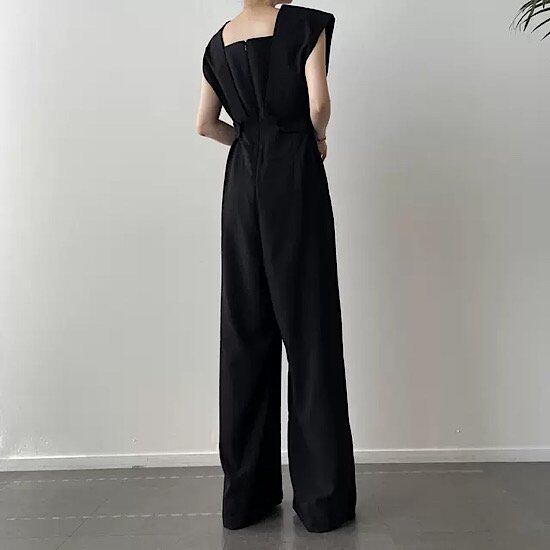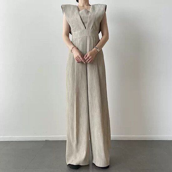 大人のセクシーさよりも、上品で気品のあるかっこ良さを追求した、ノースリーブ仕立てのオールインワン。