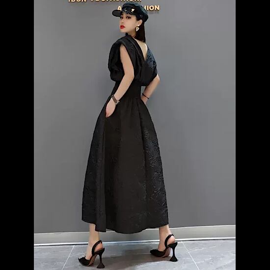 結婚式ドレス Vネック 個性的 ノースリーブ無地 シンプル ミモレ丈 発表会 演奏会 レディース 結婚式 ステージ衣装 エレガント ウエディングドレス カラードレス イブニングドレス