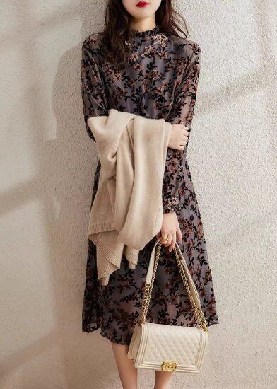 結婚式ドレス レディース 花柄 長袖 フリルネック ハイネック ベルベット レトロ クラシカル エレガント シック 演奏会 発表会 二次会 謝恩会 結婚式 シアー 透け感 お呼ばれ パーティー