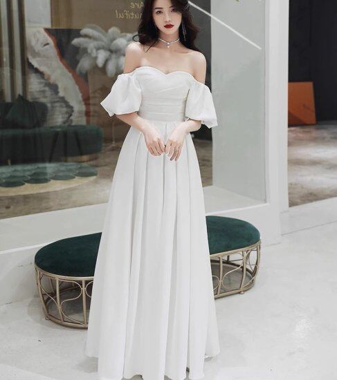結婚式ドレス レディース オフショルダー 2way Aライン 演奏会 発表会 ウェディングドレス パーティードレス イブニングドレス 選べる丈 ミディアム丈 ミモレ丈 ロング丈 エレガント 華やか