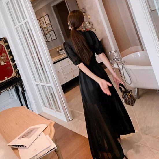 パンツドレス レディース 結婚式ドレス オールインワン Vネック ワイドパンツ 半袖 パフスリーブ ジャンプスーツ 透け感 シースルー 演奏会 発表会 ステージ衣装 パーティー 華やか ワンピース