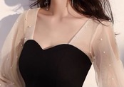 透け感のある袖に散りばめられたパールが華やかです♪