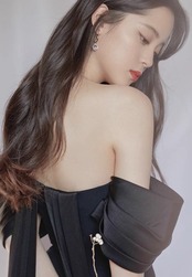 華奢な肩を演出するオフショルダーロングドレス。