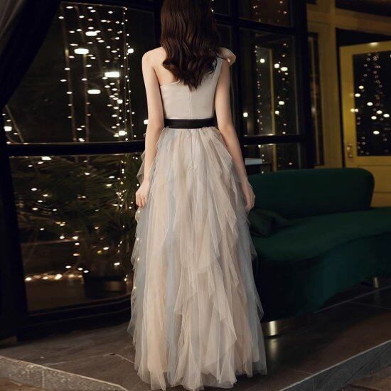 演奏会ドレス レディース 結婚式ドレス ワンショルダー ウエストリボン ノースリーブ 結婚式 発表会 ステージ衣装 謝恩会 パーティードレス イブニングドレス エレガント 華やか ロングドレス