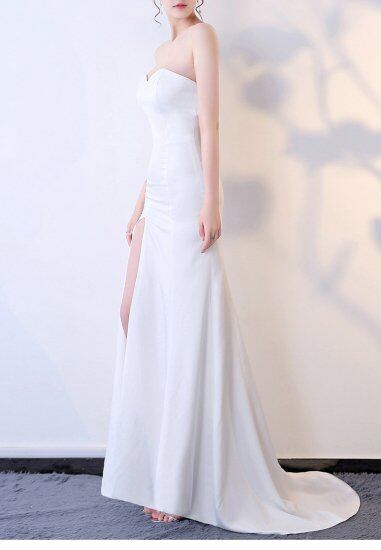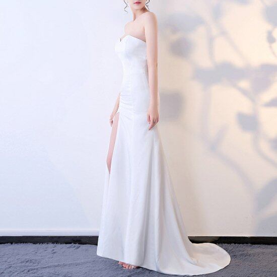 演奏会ドレス レディース マーメイド ロング丈 マキシ丈 ベアトップ ノースリーブ スリット パーティードレス イブニングドレス 結婚式 エレガント セクシー 華やか ステージ衣装 ロングドレス