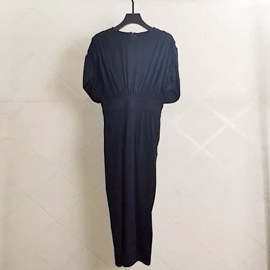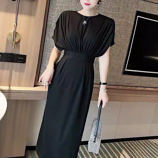 スッキリしたシルエットがシンプルながらも今年らしいひざ丈ワンピースドレス。