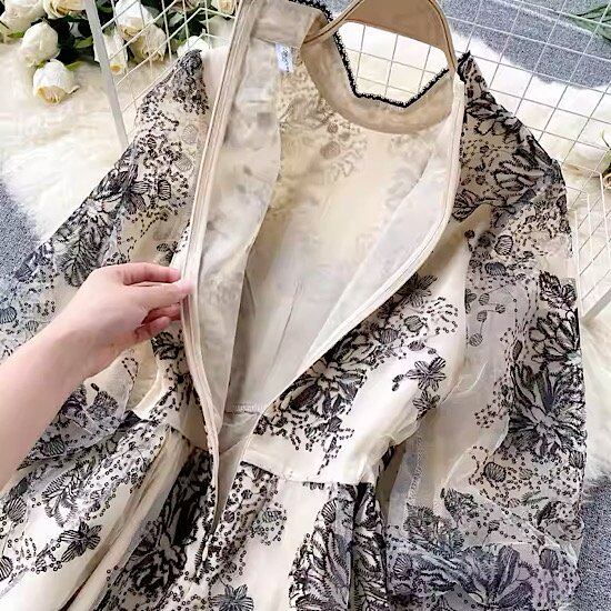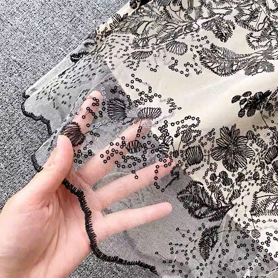SNS映えする花柄刺繍のフレアシースルードレス。