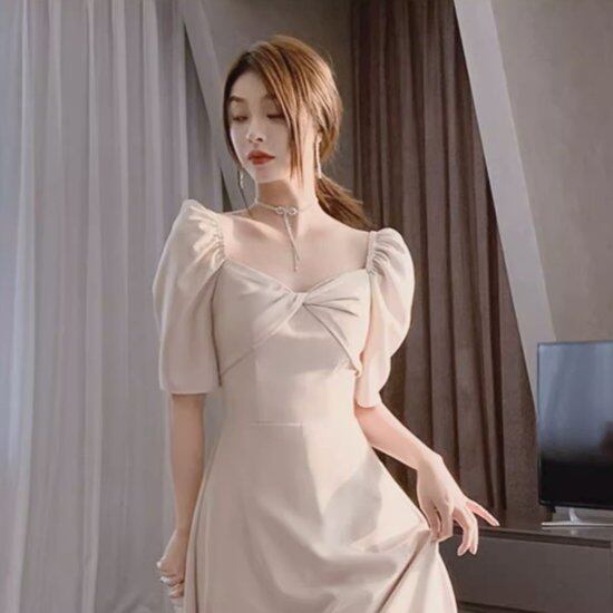 結婚式ドレス レディース パーティードレス パフスリーブ ノースリーブ ワンショルダー スクエアネック ロング丈 ミニ丈 ブライズメイド エレガント 演奏会 二次会 披露宴 謝恩会 ステージ衣装
