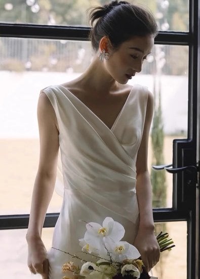 ウェディングドレス レディース 結婚式ドレス ロングドレス Vネック スリット カシュクール 薄手 スリム 無地 シンプル 演奏会 ステージ衣装 パーティードレス イブニングドレス エレガント