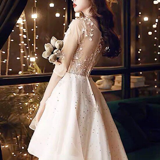 結婚式ドレス フィッシュテールスカート レース 五分袖 ハイウエスト 発表会 演奏会 レディース 結婚式 ステージ衣装 エレガント ウエディングドレス カラードレス イブニングドレス