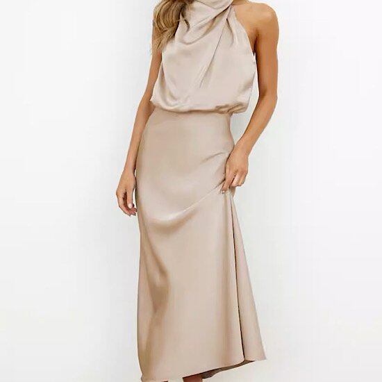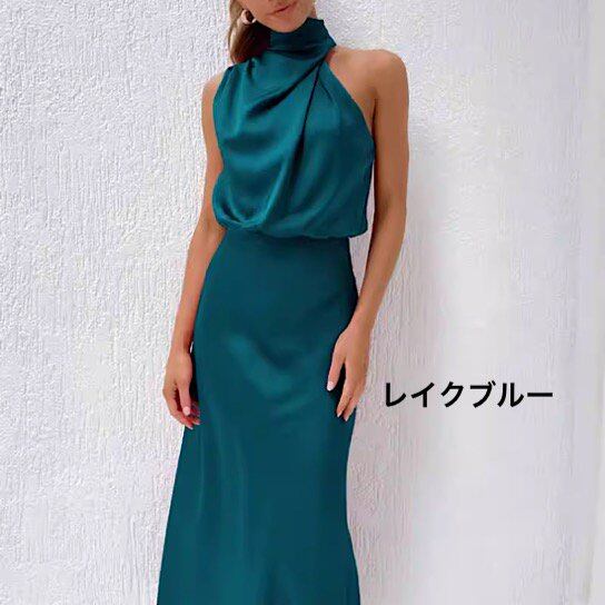 結婚式ドレス ハイネック ロング丈 ノースリーブ 無地 シンプル ハイウエスト 発表会 演奏会 レディース 結婚式 ステージ衣装 エレガント ウエディングドレス カラードレス イブニングドレス