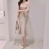 落ち着いたカラーなどエレガントに映え、スレンダーシルエットが気になる太ももを隠しつつ足長効果も生みます!