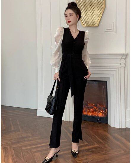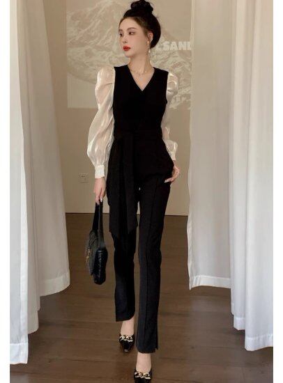 スリムなパンツシルエットにふんわりした袖がエレガントです♪