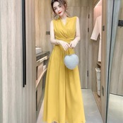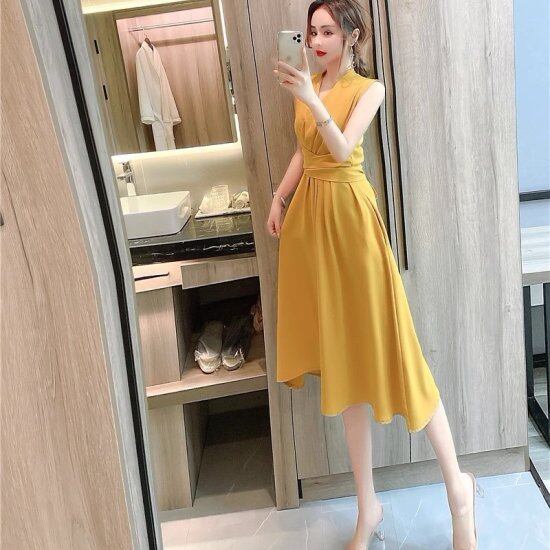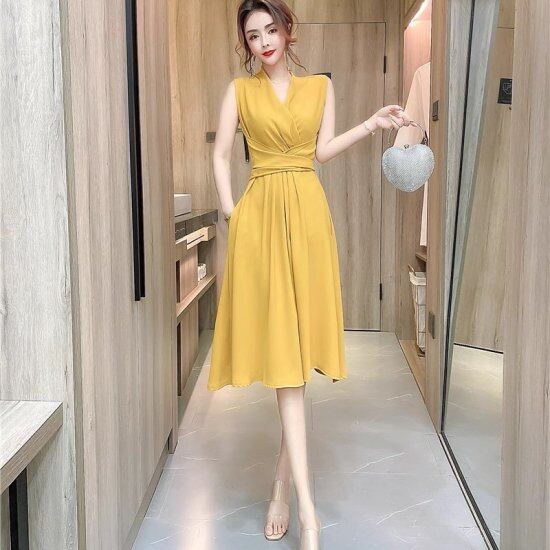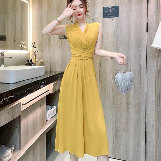 結婚式ドレス レディース Vネックワンピース ノースリーブ カシュクール ミディアム丈 ひざ丈 Aライン 無地 シンプル 演奏会 二次会 披露宴 謝恩会 パーティードレス 華やか エレガント