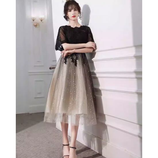 キラキララメのチュールスカートが目を引く膝丈ドレス♡