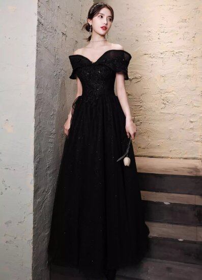 キラキラ+透け感でブラックドレスを華やかに仕上げています。