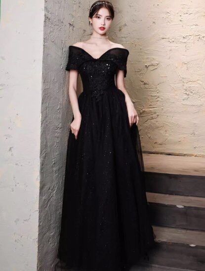 演奏会ドレス レディース オフショルダー Vネック ビーズ スパンコール ビジュー ハイウエスト ロング丈 マキシ丈 カラードレス ステージ衣装 パーティー イブニングドレス 華やか エレガント