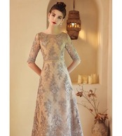 シックなカラーで高級感があり落ち着いた印象のドレスです。