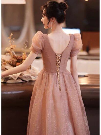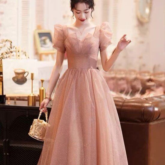 演奏会ドレス レディース ロングドレス パフスリーブ スクエアネック Vネック ハイウエスト マキシ丈 レース カラードレス 結婚式 謝恩会 ステージ衣装 パーティー イブニングドレス エレガント