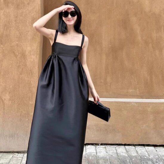 結婚式ドレス レディース ロングドレス コクーン ストラップ スクエアネック ノースリーブ 黒 ハイウエスト レトロ クラシカル 演奏会 二次会 披露宴 パーティー イブニングドレス エレガント