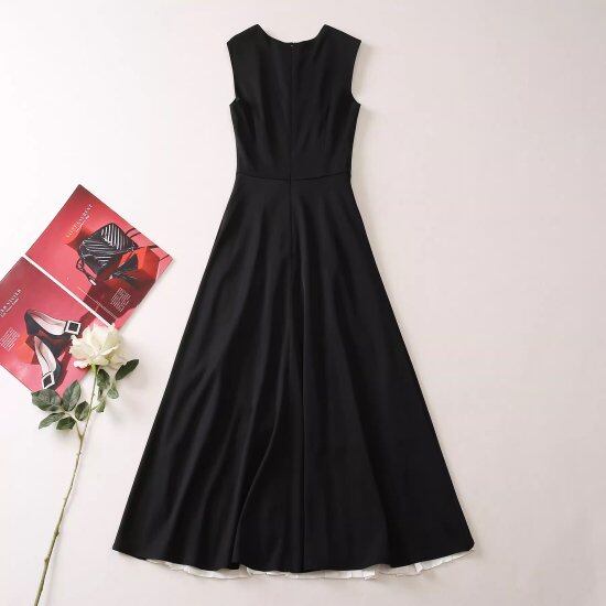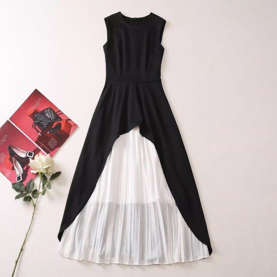 結婚式ドレス レディース バイカラー 異素材MIX プリーツスカート ノースリーブ ラウンドネック ワンピース ロング丈 マキシ丈 演奏会 二次会 ステージ衣装 パーティー イブニングドレス