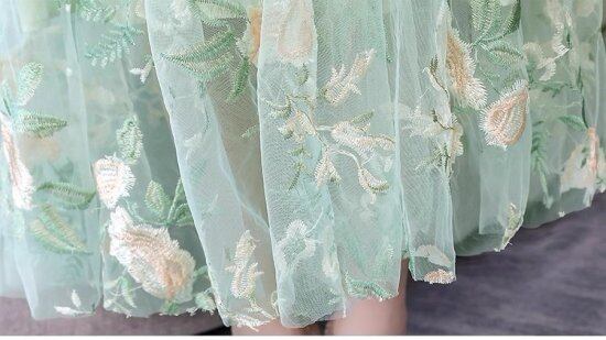 華やかな刺繍レースのワンピースドレス。