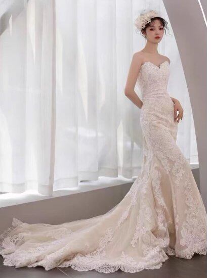 ウェディングドレス レディース マーメイド ロングドレス レース ノースリーブ ハートネック ベアトップ チューブトップ タイト スリム マキシ丈 結婚式 パーティー イブニングドレス エレガント