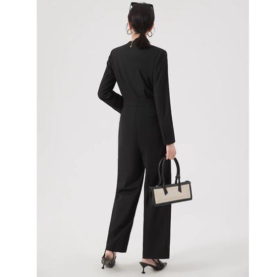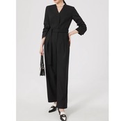 オールインワン レディース ジャンプスーツ Vネック 長袖 ベルト ワイドパンツ ストレートパンツ 無地 シンプル 結婚式 二次会 披露宴 お呼ばれ パーティー ワンピース きれいめ オフィス