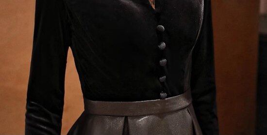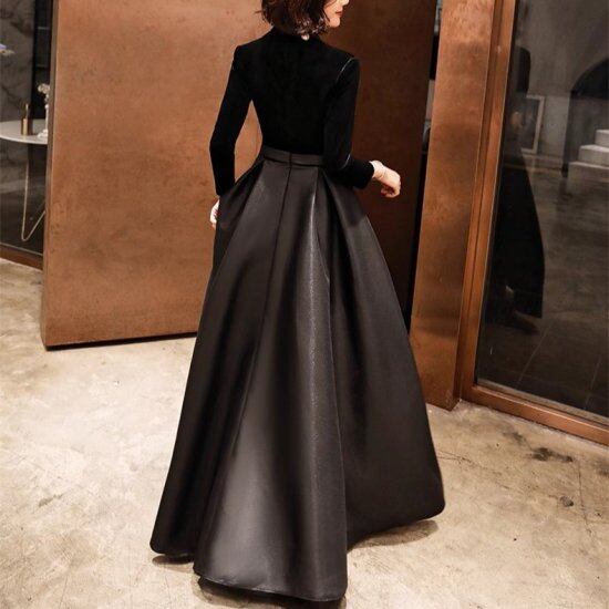 演奏会ドレス レディース ロングドレス スタンドカラー 長袖 九分袖 ベルベット 異素材MIX キーネック ハイウエスト マキシ丈 結婚式 二次会 謝恩会 パーティー イブニングドレス エレガント