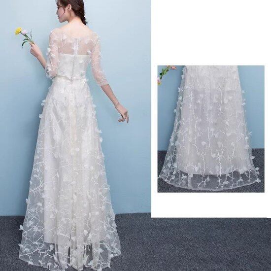 ウェディングドレス レディース レース 花柄 刺繍 シースルー シアー 透け感 七分袖 五分袖 ベアトップ ラウンドネック 総レース 結婚式 演奏会 パーティードレス イブニングドレス エレガント