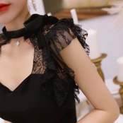 結婚式ドレス レディース タイトワンピース レーススリーブ チョーカー風 リボン Vネック ハートネック ノースリーブ ミモレ丈 スリム 演奏会 二次会 披露宴 謝恩会 パーティー エレガント