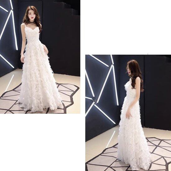 演奏会ドレス レディース フェザー ノースリーブ キャミソールワンピース フレア ミディアム丈 ミモレ丈 ロング丈 マキシ丈 結婚式 二次会 ステージ衣装 謝恩会 エレガント 華やか おしゃれ