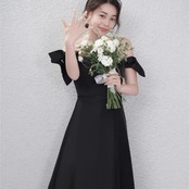 アクセサリーや小物が映えるシンプルで上品なドレスです。
