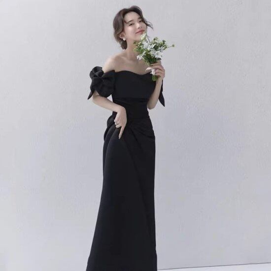 演奏会ドレス レディース ウェディングドレス オフショルダー スリム ロングドレス マキシ丈 黒 結婚式 ブライダル 二次会 披露宴 カラードレス パーティードレス イブニングドレス エレガント