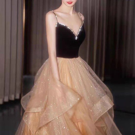 演奏会ドレス レディース Vネック キャミソール ビジュー パール レーススカート ボリュームスカート ロングドレス マキシ丈 二次会 カラードレス ステージ衣装 パーティードレス エレガント