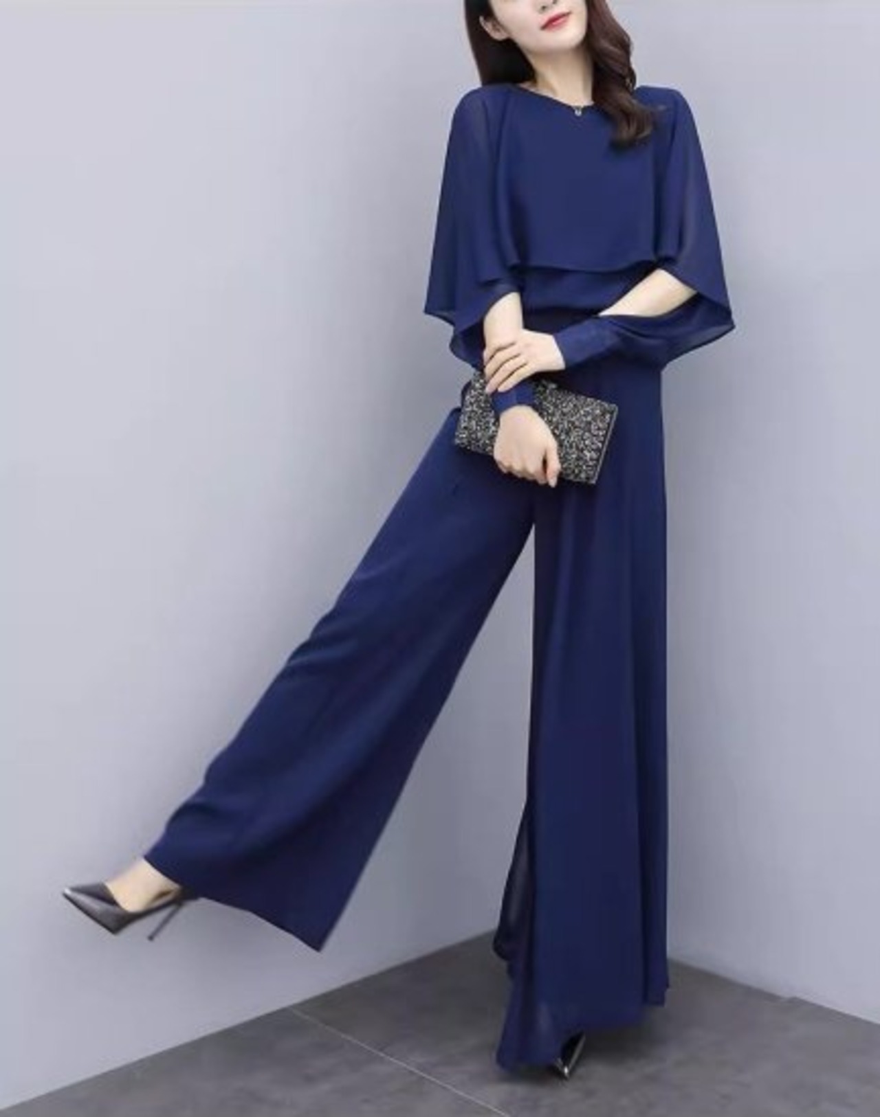 パンツドレス レディース パンツスーツ ワイドパンツ ロング丈 シフォン ケープ 長袖 セットアップ 上下セット 無地 透け感 シアー 結婚式 演奏会 披露宴 謝恩会 パーティードレス エレガント