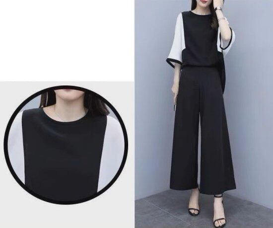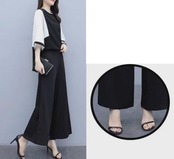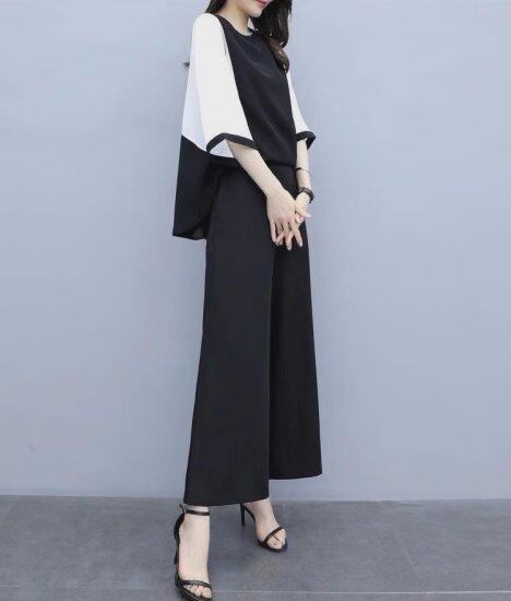 パンツドレス レディース セットアップ パンツスーツ 上下セット バイカラー ラウンドネック ワイドパンツ クロップドパンツ 結婚式 演奏会 二次会 披露宴 パーティードレス エレガント おしゃれ