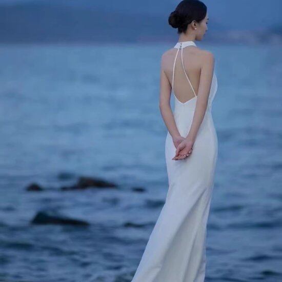 ウェディングドレス レディース ホルターネック ロングドレス マーメイド フィッシュテール タイト スリム 背中あき 肌見せ 結婚式 パーティードレス イブニングドレス セクシー 上品 エレガント