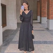 Vネックにハイウエストタイトで全体的なスタイルを良く見えさせる★