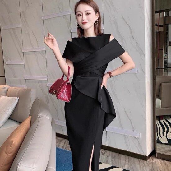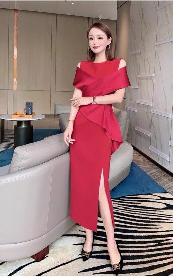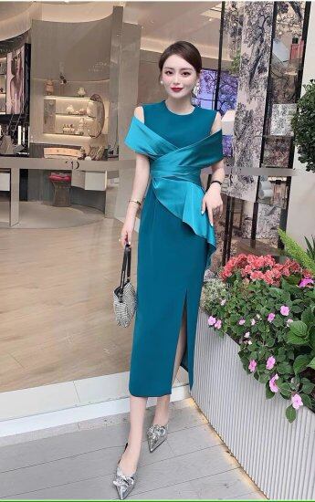 結婚式ドレス レディース タイトワンピース ノースリーブ ショール ラウンドネック スリット スリム ミモレ丈 ロング丈 演奏会 二次会 披露宴 謝恩会 パーティードレス おしゃれ エレガント