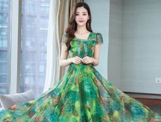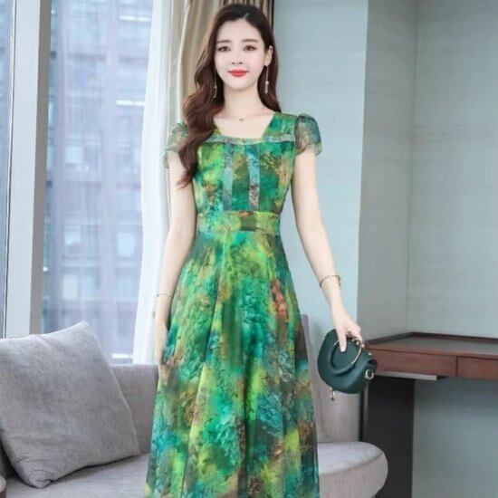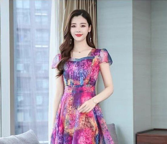 パーティードレス レディース 花柄 フラワープリント プリントワンピース Aライン スクエアネック 半袖 結婚式 演奏会 二次会 披露宴 ステージ衣装 謝恩会 サマードレス 華やか エレガント