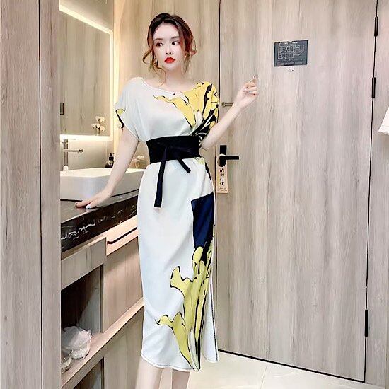 結婚式ドレス ラウンドネック 軽やか ミモレ丈 ハイウエスト 発表会 演奏会 レディース 結婚式 ステージ衣装 エレガント ウエディングドレス カラードレス イブニングドレス 薄手 半袖