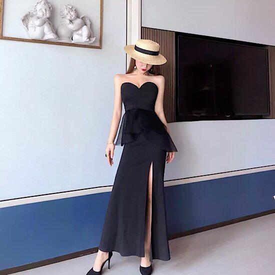 結婚式ドレス ハートカット スリット ロング丈 スリム フレンチ チューブトップ 無地 シンプル 発表会 演奏会 レディース 結婚式 ステージ衣装 エレガント ウエディングドレス イブニングドレス