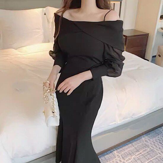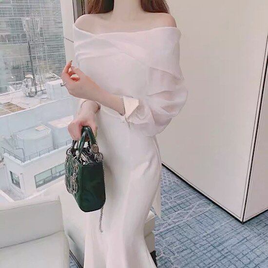 結婚式ドレス マーメイド 無地 シンプル 長袖 ミモレ丈 ハイウエスト 発表会 演奏会 レディース 結婚式 ステージ衣装 エレガント ウエディングドレス カラードレス イブニングドレス
