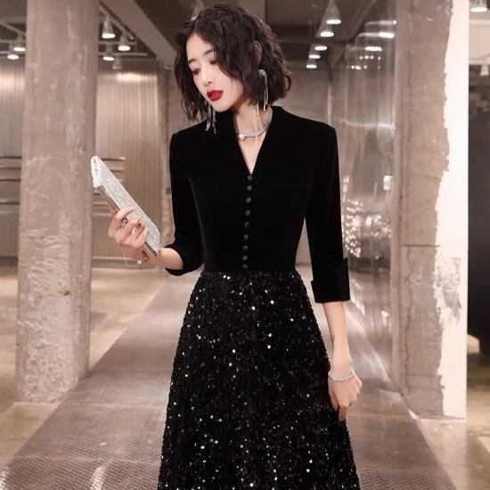 キラキラなスカートがエレガントなブラックドレス。