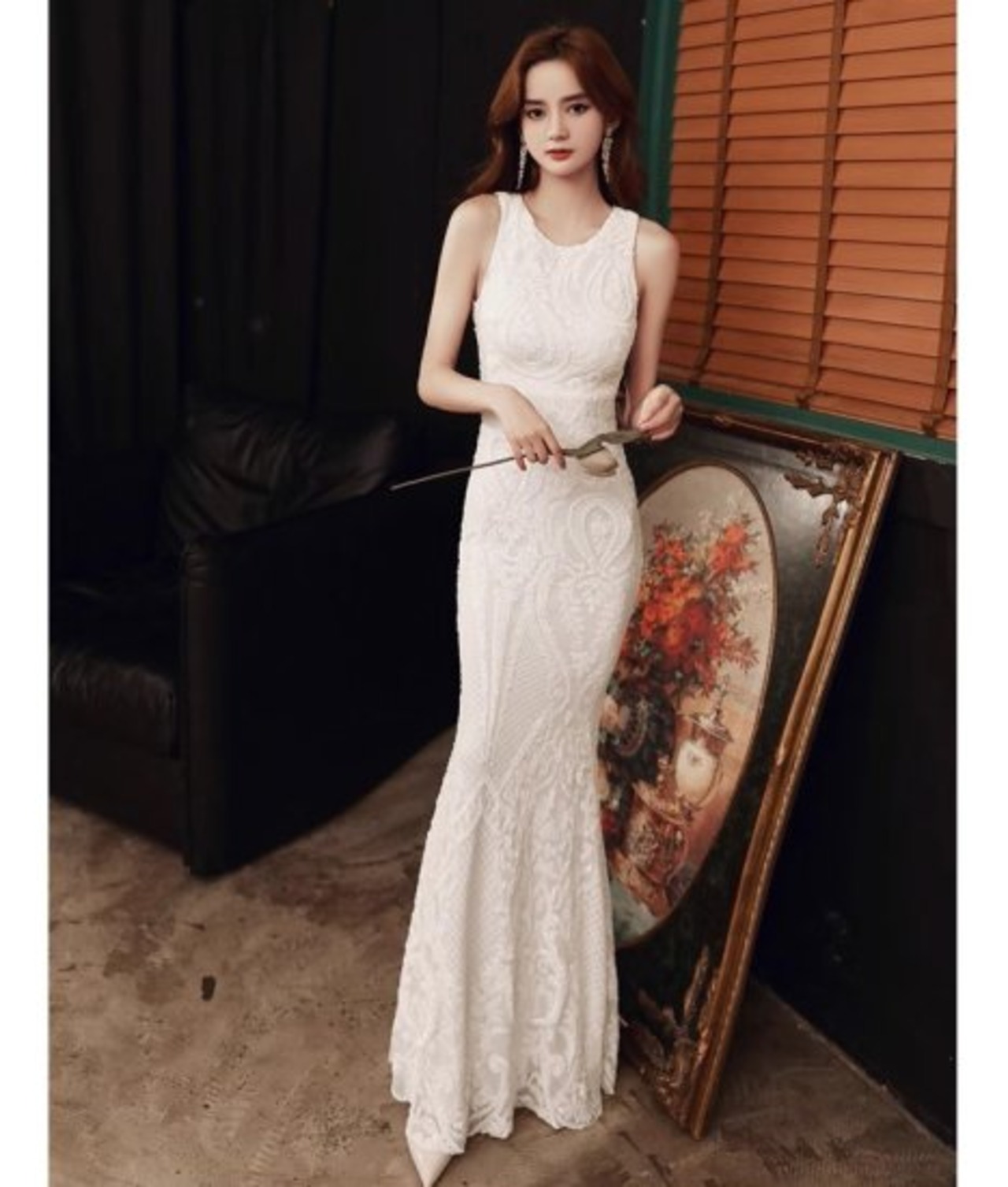 パーティードレス レディース マーメイド ノースリーブ ロングドレス スリム タイト レース マキシ丈 Uネック 背中あき きれいめ エレガント 結婚式 演奏会 イブニングドレス パーティー