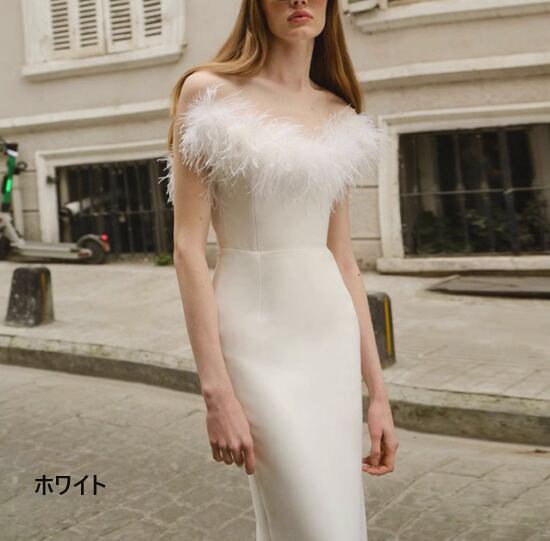 パーティードレス レディース ワンピースドレス ロングドレス 結婚式ドレス 演奏会ドレス 肩出し セクシー フェザー ハイウエスト スリムフィット きれいめ エレガント お呼ばれ 二次会 フォーマル