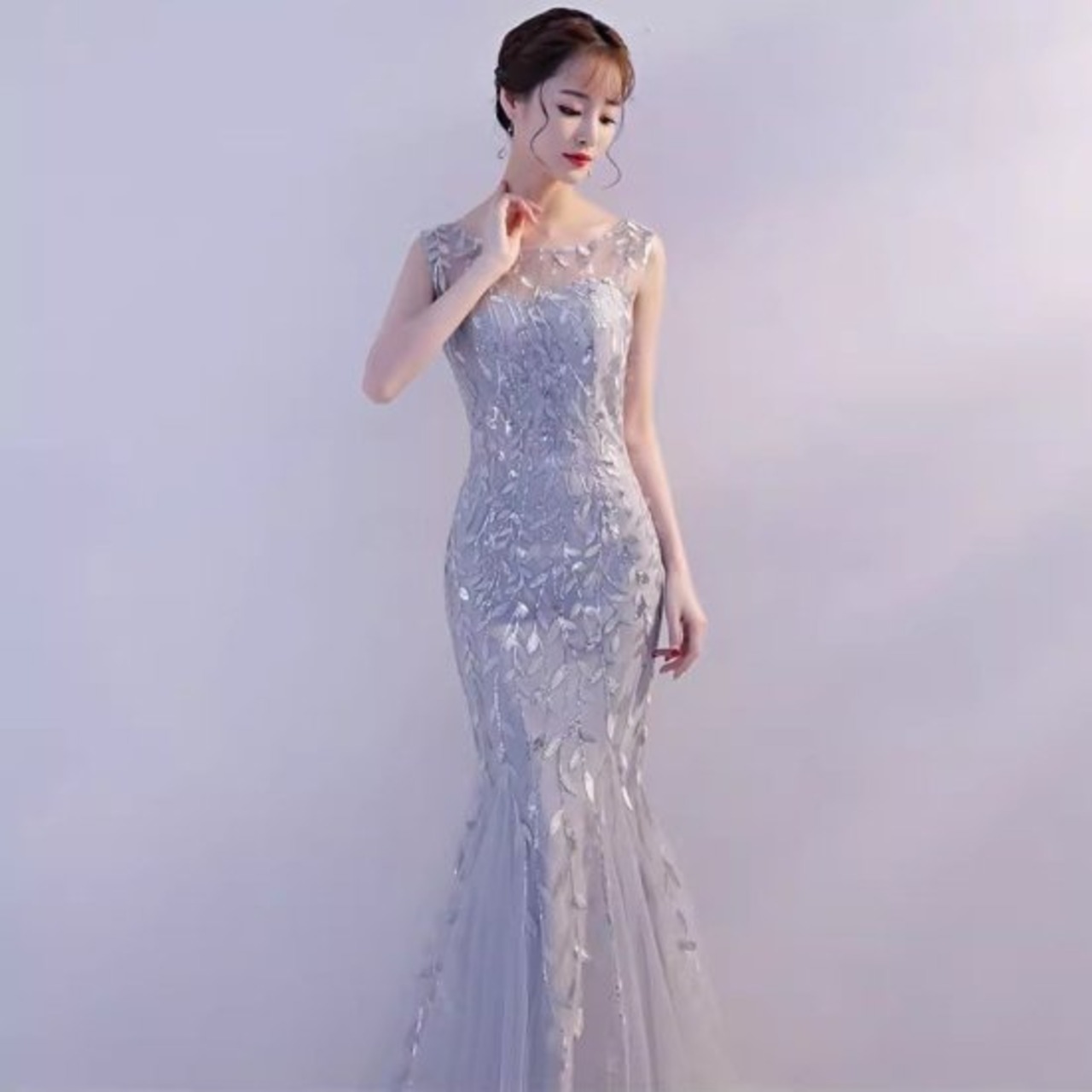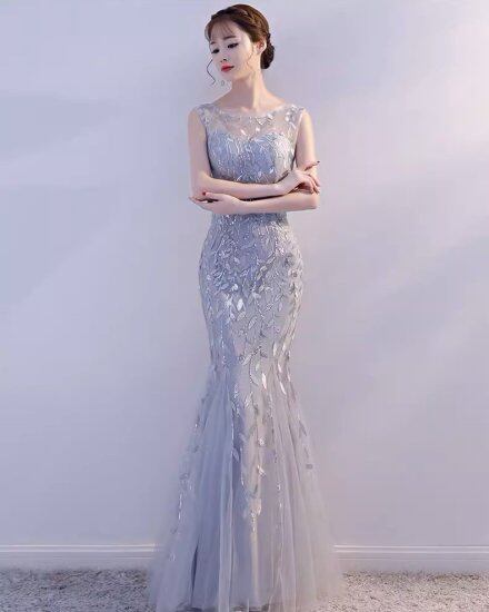 演奏会ドレス レディース 結婚式ドレス ノースリーブ マーメイド フィッシュテール シースルー シアー 透け感 スリム タイト ドレス エレガント ステージ衣装 パーティー イブニングドレス