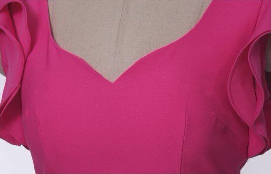 立体的なフリル袖が大人かわいいワンピースドレス。