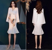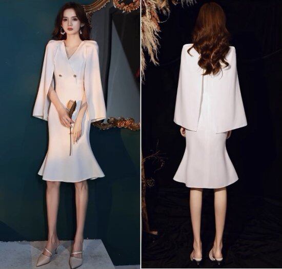 ワンピース レディース マーメイド Vネックワンピース ケープ風 ドレス ハイウエスト マント ひざ丈 ミディアム丈 きれいめ エレガント 結婚式 二次会 謝恩会 パーティードレス おしゃれ